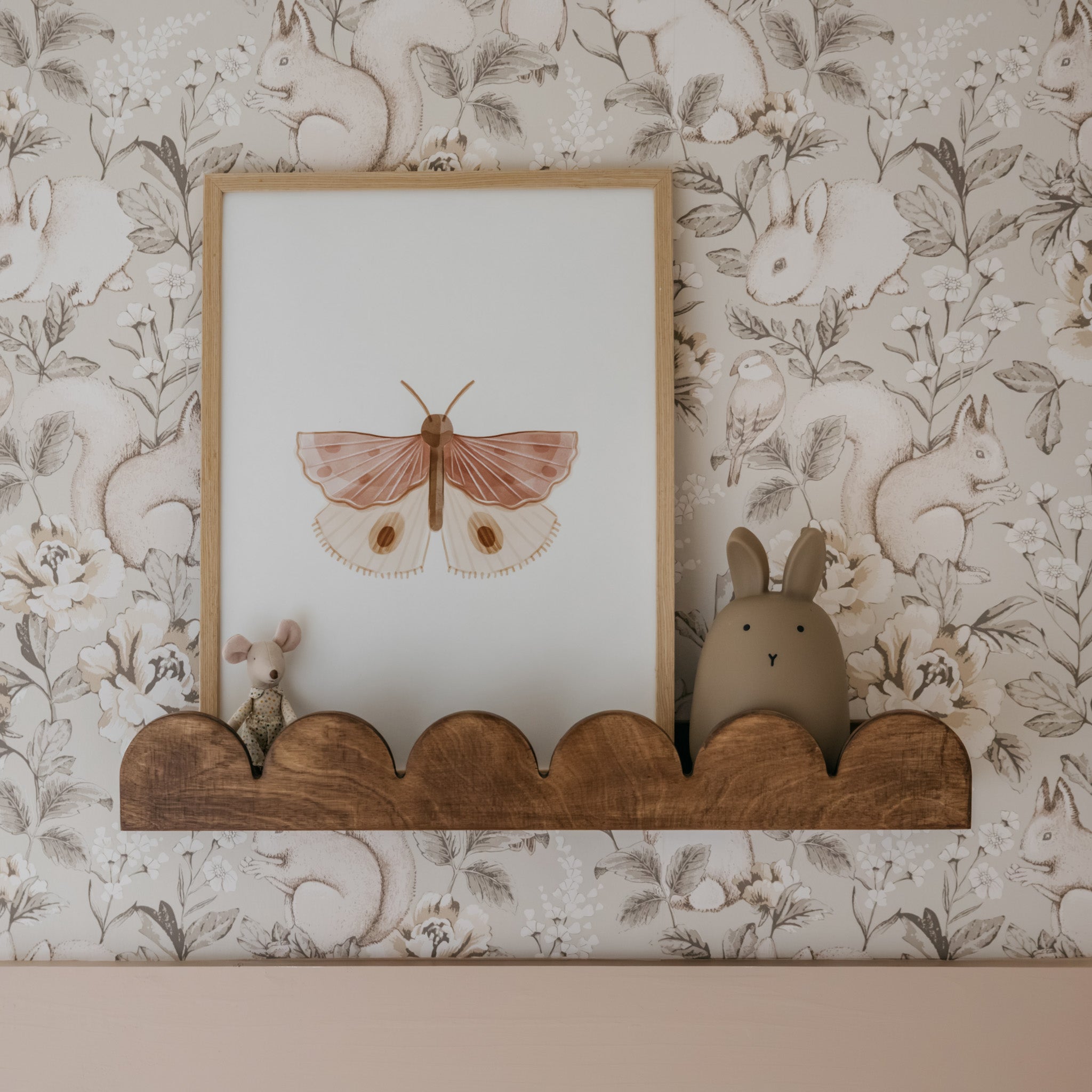 Tilføj noget særligt til børneværelset med dette sæt væghylder i træ! Disse hylder er trendy, praktiske og passer ind i ethvert rum. Sættet indeholder en XL-hylde på 60 cm og en mindre på 42 cm. Nem at fastgøre og skaber en ekstra hyggelig atmosfære på både drenge- og pigeværelser! Specifikati...
