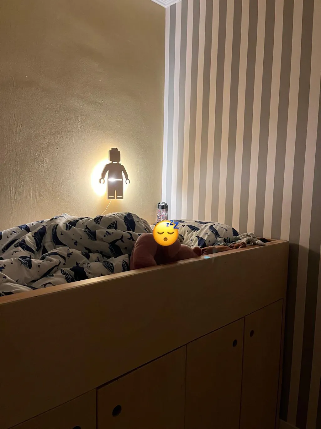 Denne seje lampe formet som en dukke ser fantastisk ud på et drengeværelse eller et andet børne- og babyværelse! Natlampen er lavet af krydsfiner. Skumringslampen er sjov at se på om dagen, men ekstra sjov i mørket, når lyset er tændt!