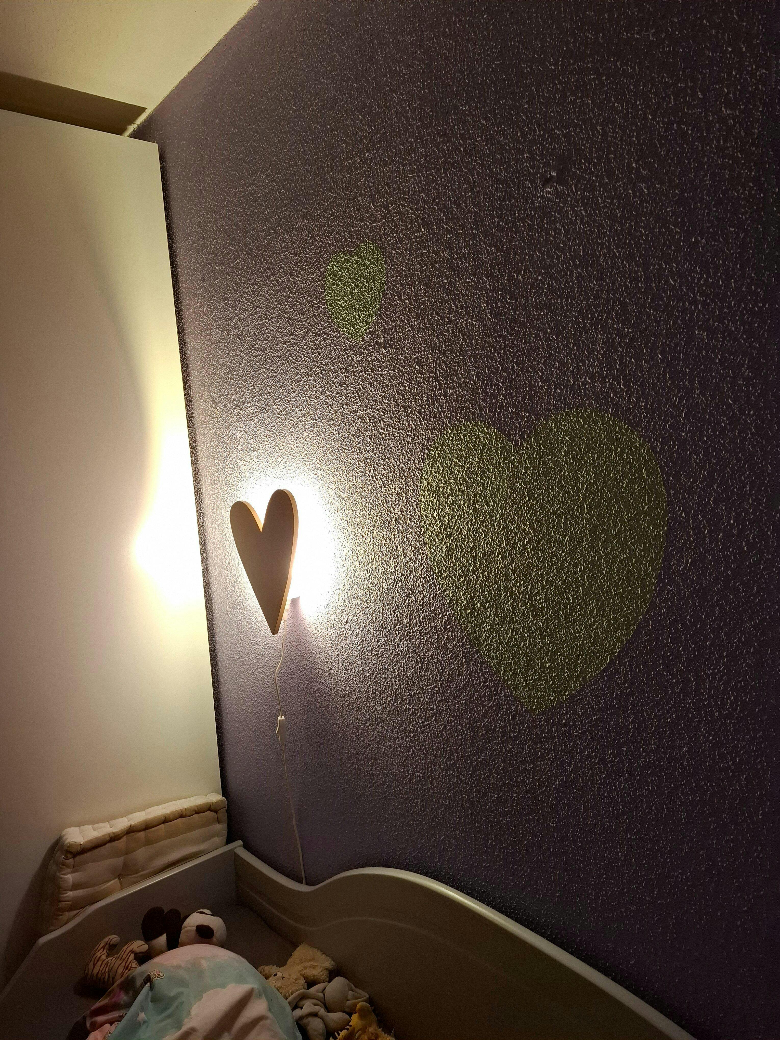 En hjerteformet trælampe på væggen! Hvor fedt er det? Denne hjerteformede natlampe vil virkelig gøre dit værelse meget mere sjovt, sødt og stilfuldt. Træ er meget populært på børne- og babyværelser i disse dage! Og passer til alt. Den smukke farve: krydret honning i dette hjerte er også helt trendy.