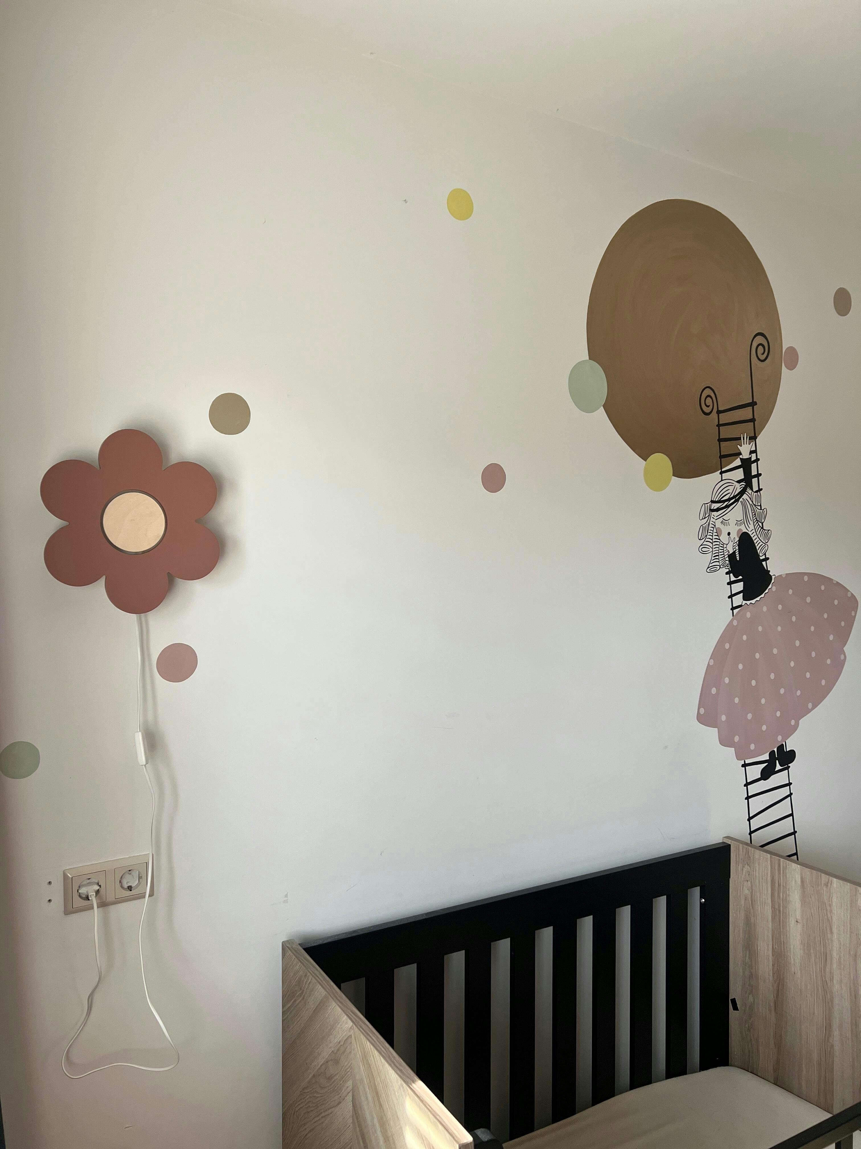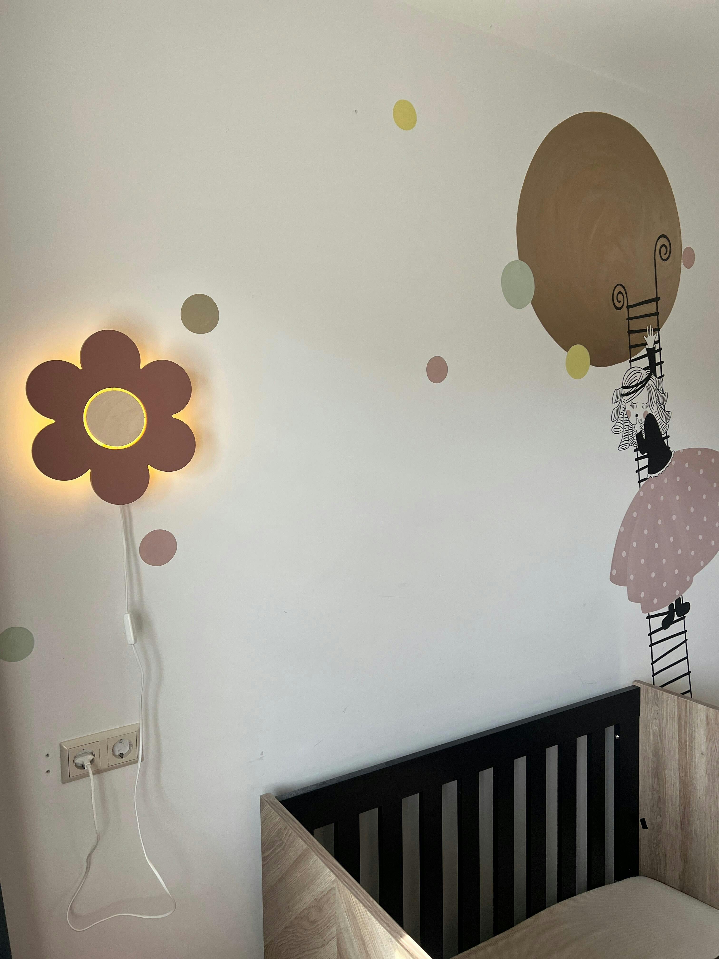 Houten wandlamp kinderkamer | Bloem - terra roze